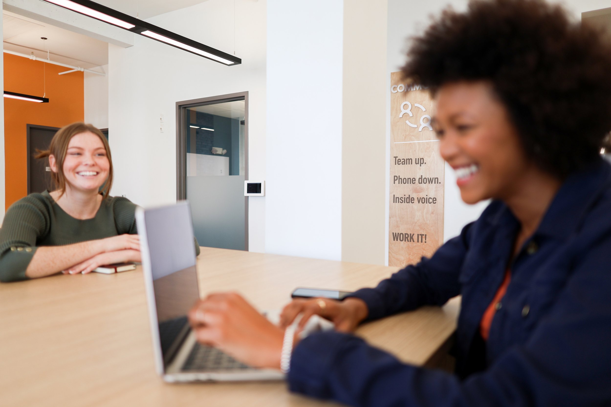 Team up. Phone down. Inside voice. Work it!